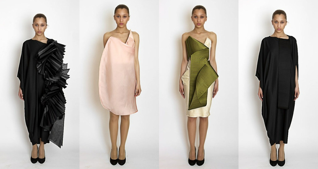 I recently came across talented Sudanese designer, Omer Asim’s designs. He has a signature style of mixing fabrics, unexpected shapes & random detailing (explains his architecture degree!). The A/W’10 collection consists of lots of delicate paper-like fabrics and pastel colors. Watch this space!