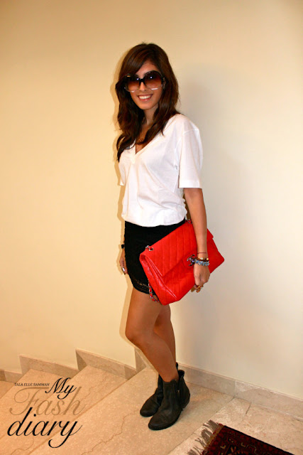 Fashion Look of the Day September 27 Share Twitter Facebook Comments Subcategorized in: Look of the Day Lace skirt by H&M. Tee by Truly Madly Deeply. Boots by Kurt Geiger. Purse by Chanel