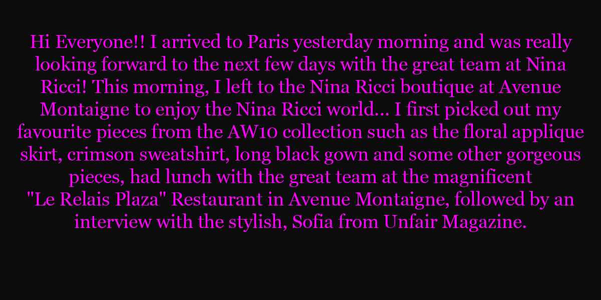 EXCLUSIVE: Lina Samman's Nina Ricci Diary!