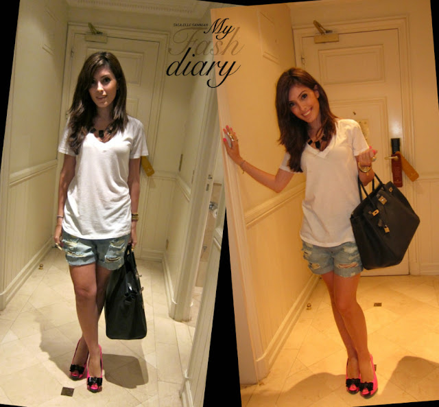Fashion Look of the Day October 13 Share Twitter Facebook Comments Subcategorized in: Look of the Day Truly Madly Deeply Tshirt. Philipp Plein Neon heels. Hermes Birkin. House of Harlow necklace