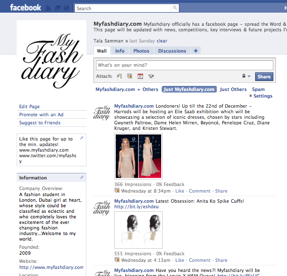 Myfashdiary officially has a page on Facebook! The Page will be updated with news, competitions and pictures that won’t be included on the blog. If you’re on facebook, please click here!