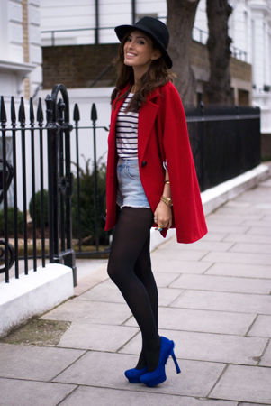 | YSL Palais heels. Isabella Oliver cape. denim shorts by Topshop. |