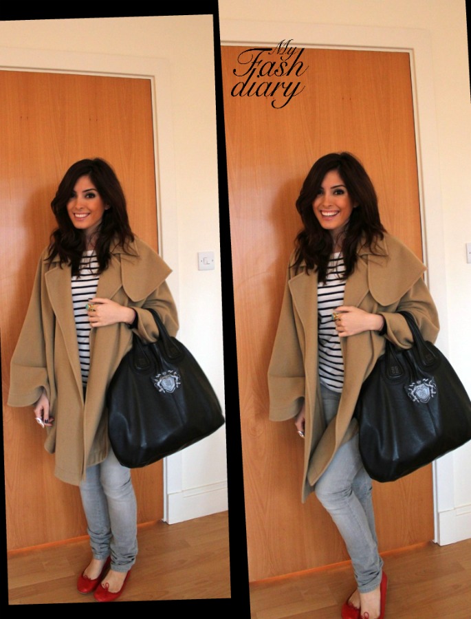 | Camel Cape by Isabella Oliver. Jeans by Zara. Flats by Repetto. Purse by Givenchy |