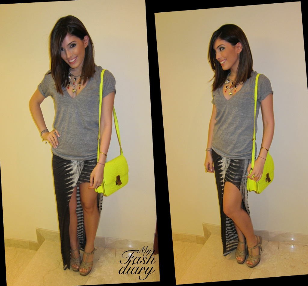 | Helmut Lang skirt. YSL Trib sandals. AA shirt. Celine purse |